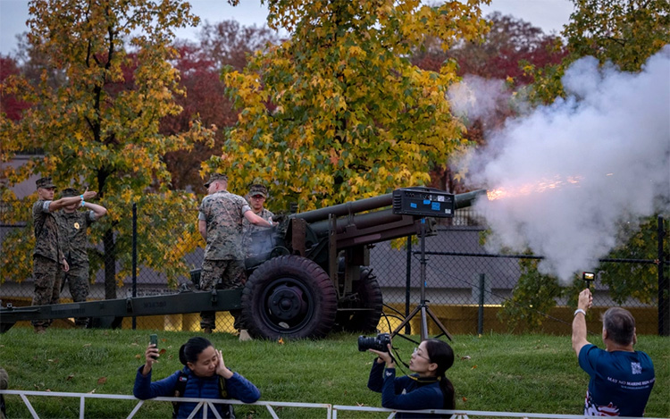 Our first few steps were greeted with enthusiastic cheers from a small group of Marines before we passed Arlington National Cemetery, a somber and respectful moment in the first light of day. With more than 2,200 active and retired Marines supporting the day’s festivities, men and women in uniform would be a frequent sight on this day. (Sound familiar, D.C.?)