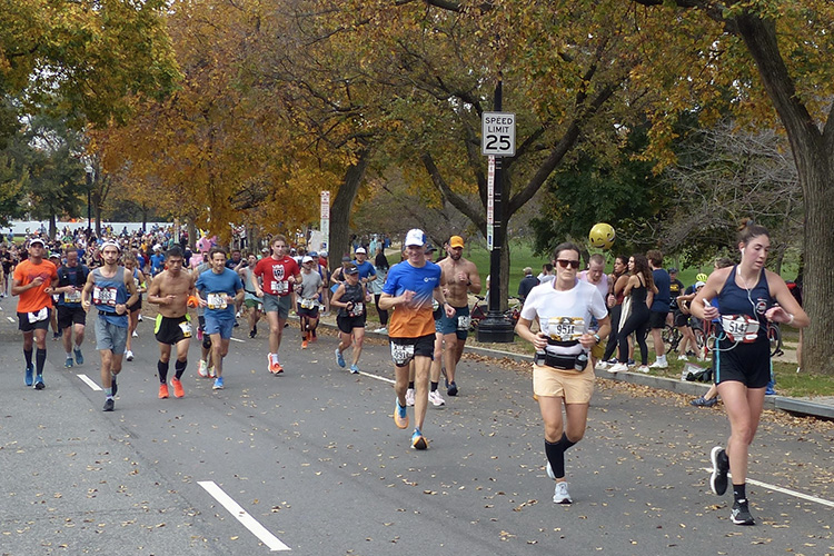 Into the heart of Arlington we ran, transitioning from the business district into more residential neighborhoods where the first civilian spectators of the day greeted us with exuberant cheers. For a visitor coming from the West Coast, the stately red-brick buildings were an appealing sight, and I almost expected to see the crowds here dressed in powdered wigs, petticoats and tricorne hats.