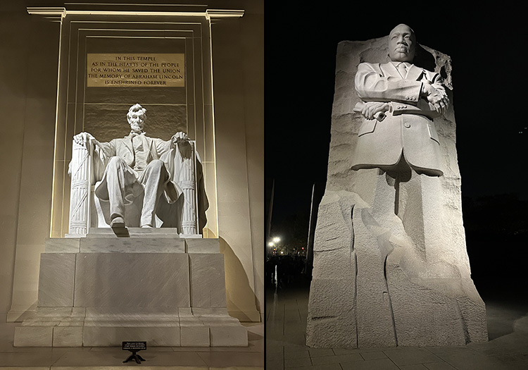 And walk we did, our tireless peregrinations covering the city like the dotted line in a Bil Keane Family Circus cartoon. And it was awesome. After enjoying dinner outdoors Wednesday night in National Landing, we spent Thursday touring the Smithsonian National Museum of Natural History followed by the National Archives, where my long-time friend Jill (who works as Deputy Chief of Staff for an Illinois congressman) introduced us to one of the friendly archivists who generously took the time to share his insights on the Rotunda that houses the Declaration of Independence, the Bill of Rights, and the U.S Constitution. We then strolled to dinner at nearby Oyamel (a local Mexican mainstay from celebrity chef José Andrés) before joining a guided “monuments at night” tour that showcased the city’s iconic monuments, memorials, and landmarks including the Washington Memorial, the Lincoln Memorial, and the White House.
