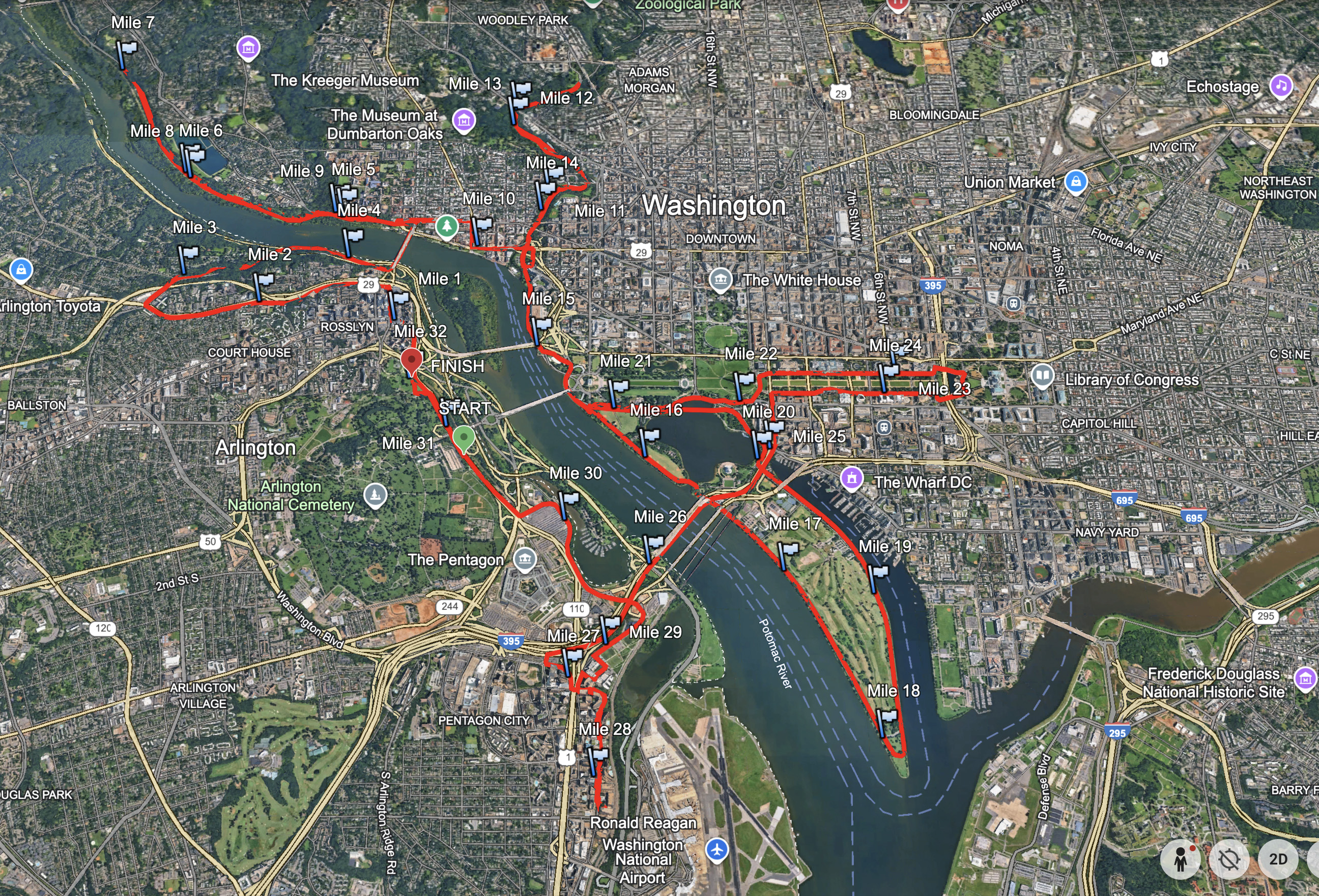 I was convinced all our walking and sightseeing around DC—coupled with the day’s heat and humidity—would eventually catch up to me; the only question was how long it would take. So I decided to maintain a comfortable sub-5-hour pace for as long as possible before fatigue inevitably set in and forced me to adjust on the fly.