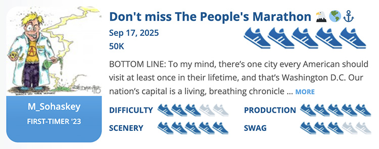 BOTTOM LINE: To my mind, there’s one city every American should visit at least once in their lifetime, and that’s Washington D.C. Our nation’s capital is a living, breathing chronicle of 249 years of American history—the good, the bad, and the ugly. And with more than 100 unique monuments & memorials plus another 750+ historic landmarks, it’s an insanely cool place to run a marathon. So much so I figured HEY, why not extend the revelry another five miles and run the Marine Corps 50K instead? So while I did run the 50K distance (the largest 50K in the country), my narrative applies to the marathon as well.