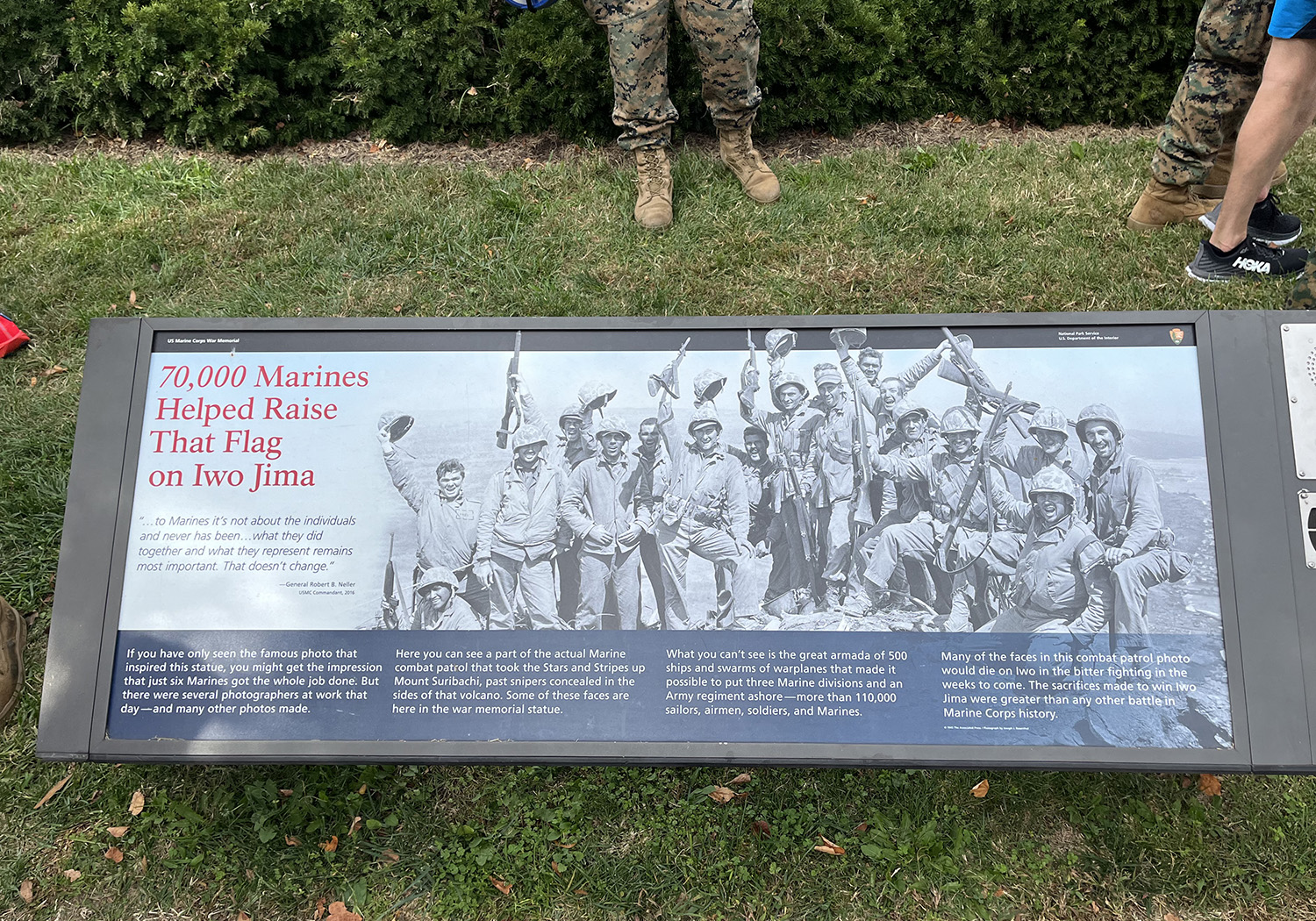 There I sat admiring one of the more remarkable monuments in a city filled with remarkable monuments. Dedicated in 1954 as a tribute to all U.S. Marines who died in service, the memorial is based on the Pulitzer Prize-winning photograph that shows six Marines raising the U.S. flag atop Mount Suribachi during the Battle of Iwo Jima on February 23, 1945. The iconic moment took place during the final stages of the American campaign in the Pacific during WWII.