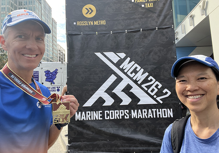 And on a personal note, a belated shout-out of support to USMC Commandant Gen. Eric Smith, who had been congratulating runners at the finish line earlier in the day and who, ironically enough, suffered cardiac arrest while out jogging later that day. Fortunately, Gen. Smith made a full recovery and returned to full duty several months later. Best wishes to the commandant on his continued good health—not only do we share a love of running, but we both hail from the same city in Texas.
