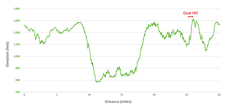 The farther we ran, the more I appreciated that the “bonus mileage” for the 50K had been tacked on early in the race. That way, for the rest of the day I could simply add five to each mile marker without the nagging realization that we’d have to run an extra five miles closer to the end of the race. From now on we’d be in sync with the marathoners, and so when they were done, we were done. Given that the 50K distance always feels to me like an annoyingly long marathon, and especially on a warm day like this, that awareness was key to maintaining a positive mindset.