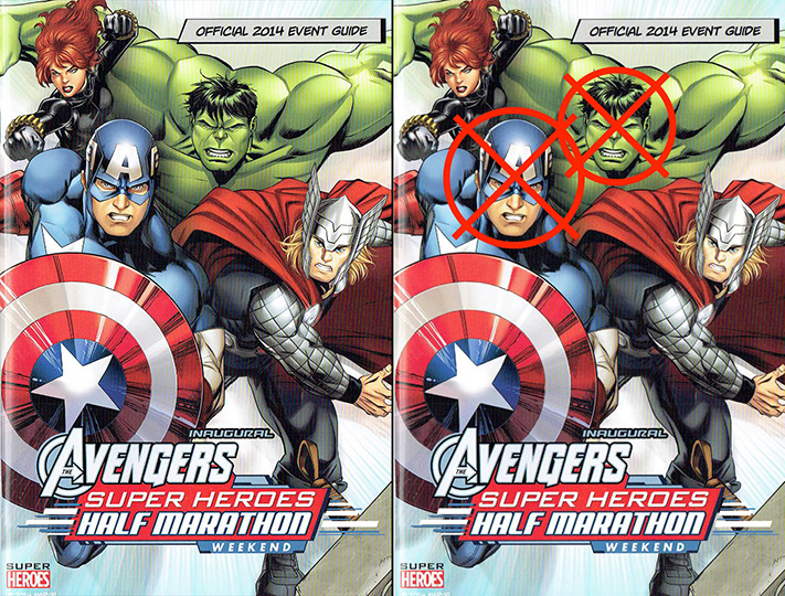 Admittedly, stricter qualifying standards will eventually go a long way toward building the race’s reputation and attracting the most competitive runners. Case in point, my own qualifying standard for this year’s Competitive (Open) Division was 2:05, a time I easily beat while wearing Hulk fists at last year’s Avengers Super Heroes Half Marathon. So maybe ([your Boston Qualifying standard ÷ 2] – 2.5 minutes) as a starting point for the non-elite Open Division? That would put the speediest qualifying standard at 1:30 (for men ages 18-34) and mine at 1:40, both of which feel like reasonable guesstimates.