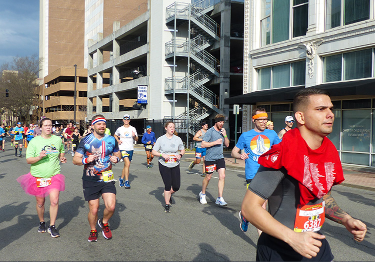 Here I ran with the 4-hour pacers as we approached Centennial Park, being careful to keep my pace in check and not chase them as we entered the park. With suboptimal performances in London and Minnesota still fresh in my mind, the last thing I wanted on a warm day was to implode and have to walk any significant mileage. Clearly I was in a better place than I’d been at either of those races, so I wanted to keep things smooth and enjoy the day. And I knew my best bet for success was to stay humble and hydrated.