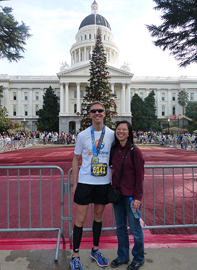 Some runners care little for race bling, while others outright scoff at the idea. But I have to admit that after 13 marathons, accepting that finisher’s medal from a friendly volunteer never gets old… and the moment always fills me with endorphin-fueled appreciation, for my own performance as well as for all those who helped me get to the finish. Each medal hanging on my wall at home recognizes the collective efforts of a largely nameless and faceless support crew – plus of course Katie, always the most important member of that crew.