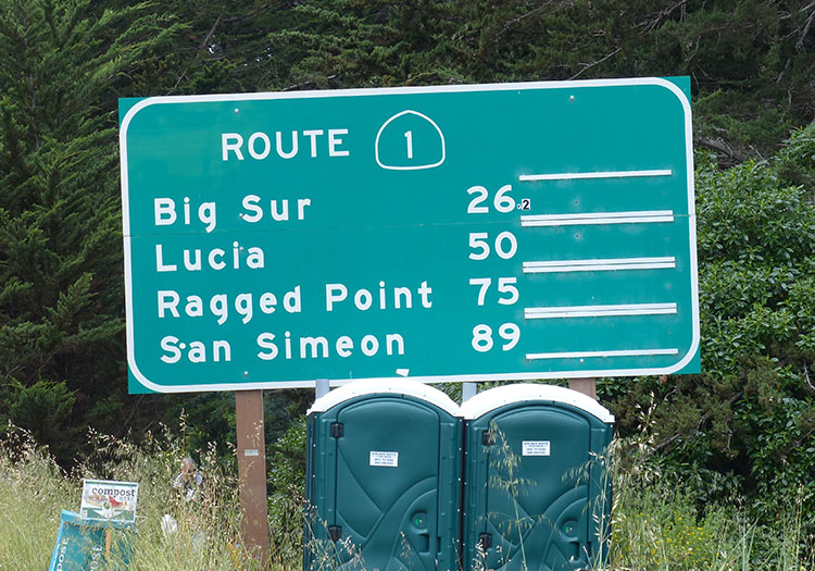 Big Sur’s iconic mile markers have a wicked sense of humor, like this example one mile before the climb up to Hurricane Point (photo: thefightandflightresponse.com)