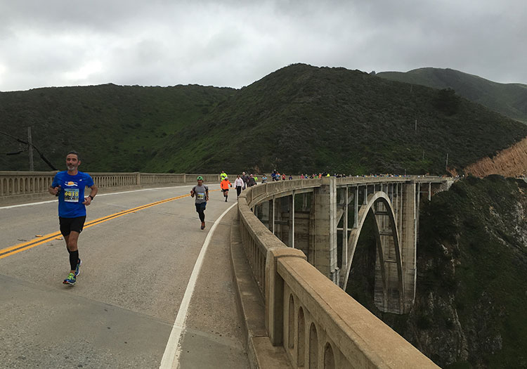 After breaking out my happy dance, the second thing I did after receiving my acceptance to the 2016 Boston Marathon last September was to throw my name into the hat for the bicoastal Boston 2 Big Sur Challenge. The Big Sur International Marathon (BSIM)—which I ran for the first time in 2014 while dealing with plantar fasciitis—falls one or sometimes two weeks after Boston, with the organizers reserving several hundred entries for runners who will also be running Boston. This year Boston and Big Sur were a mere six days apart; in 2017 the recovery period will be a more forgiving 13 days.