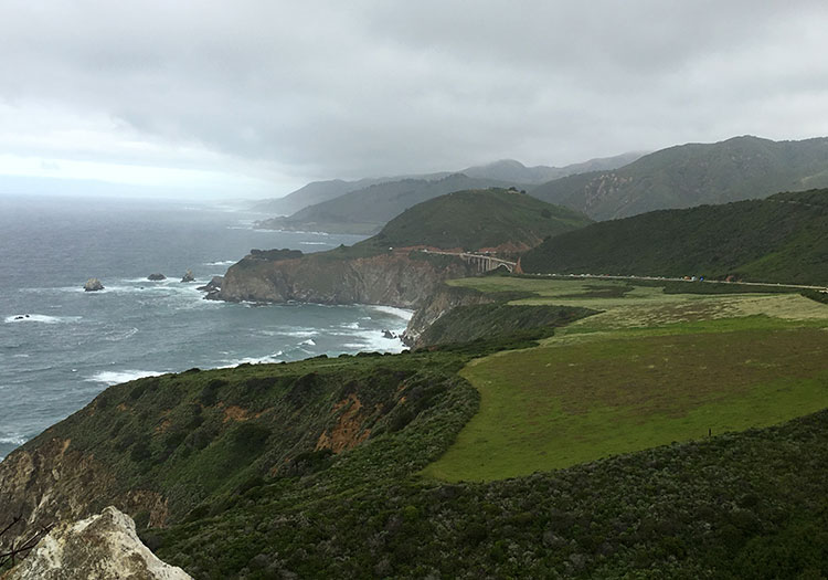 Neither rain nor snow nor swirling winds keeps Michael Martinez from his appointed role as Bixby Creek Bridge pianist—and thanks to the headwind, I could hear the first strains of his piano from atop Hurricane Point