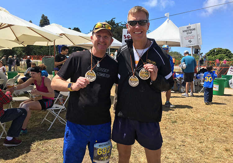 PRODUCTION: Flawless, just as it was in 2014. School buses transport all runners from Carmel or Monterey (we stayed at the uber-convenient Portola Hotel & Spa at Monterey Bay) out to Pfeiffer Big Sur State Park for the start of the race, leaving plenty of time to eat, stretch, meditate, take selfies, visit the porta-potties and generally do whatever you need to do to prepare yourself for the 26.2 miles of hilly Pacific Coast Highway that await. The pre-race pasta dinner is always a relaxed opportunity to convene with friends beforehand, and the post-race spread for B2B finishers is among the best I’ve seen at any race. The BSIM organizers could easily skate by on the course’s proximity to the Pacific Ocean and jaw-dropping vistas—instead, their assiduous attention to detail is the cherry on top of a very satisfying sundae Sunday long run.