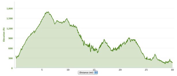 Total distance: 30 miles (with no unplanned detours)