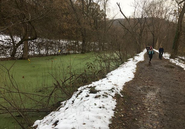 Every so often a bridge carrying traffic across the Potomac would pass overhead, but other than that the C&O Towpath was, as one RaceRaves reviewer described it, very much like Groundhog Day. Though serene enough, the early winter scenery was most memorable for its unapologetic uniformity, and it occurred to me that this could well be Mother Nature’s version of a treadmill.