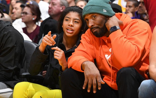 Kobe and daughter Gianna attend a Lakers game at Staples Center Dec 29, 2019 (© 2019 NBAE, Photo by Andrew D. Bernstein/NBAE via Getty Images)