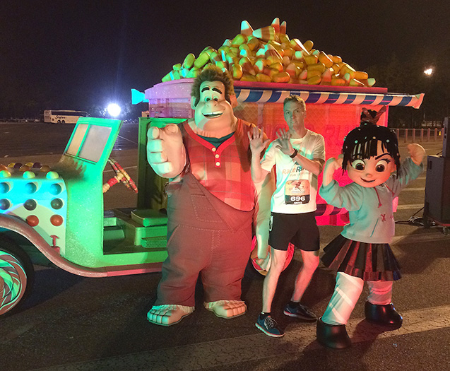 Striding past bleachers dotted with spectators, I sidestepped the flow of traffic for one last Hulk-inspired pose before crossing the finish line in 1:47:15. Gratefully I accepted a finisher medal from a shiny happy volunteer, though the moment lacked its usual “surprise & delight” luster because I’d accidentally seen the medal on display at the runDisney expo booth in New York City two weeks earlier (see Dan’s “Rules for Racing” #1). No this isn’t a deal-breaker, and yes it’s my personal bias, but runDisney needs to stop showcasing its medals before the race. After all, anticipation is a powerful carrot, and it’s not like the Disney faithful will stop running their races without a sneak peek at the bling.
