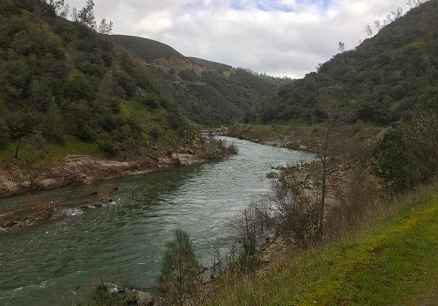 For the next two miles the dirt, grass and mud trail followed a gradual downhill trajectory into the WTC “bowl”, crossing Hwy 49 before meeting up with the gravel Western States Trail for a smooth six miles along the American River. This for me was the scenic highlight of the course—being able to focus my attention on the tranquil river rather than the technical singletrack was a nice change of pace, one that allowed me to relax and bask in the beauty of my surroundings. And my legs responded, clocking an 8:35 mile 12 before the trail headed uphill away from the river and I wisely dialed down the pace again.